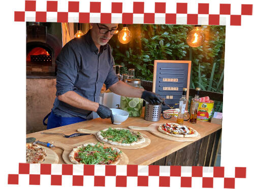 Kom een avondje genieten van versgemaakte pizza's in onze huiselijke tuin.